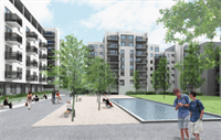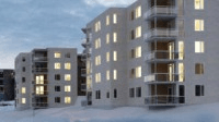 105 nya lägenheter från Veidekke Entreprenör. LC3-lådor för att dölja ventilationssystem.