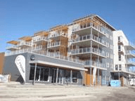 Nytt lägenhetsprojekt vid kajkanten i Holmestrand från OKK Entreprenör 2011. Taklister från Deco Systems.