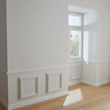 Spegeln öppnar upp möjligheten till en klassisk och elegant interiör. Den är en ”game changer” eftersom den är enkel att montera och tidsbesparande då kapning, spackling och efterarbete med att måla skarvarna inte behövs.