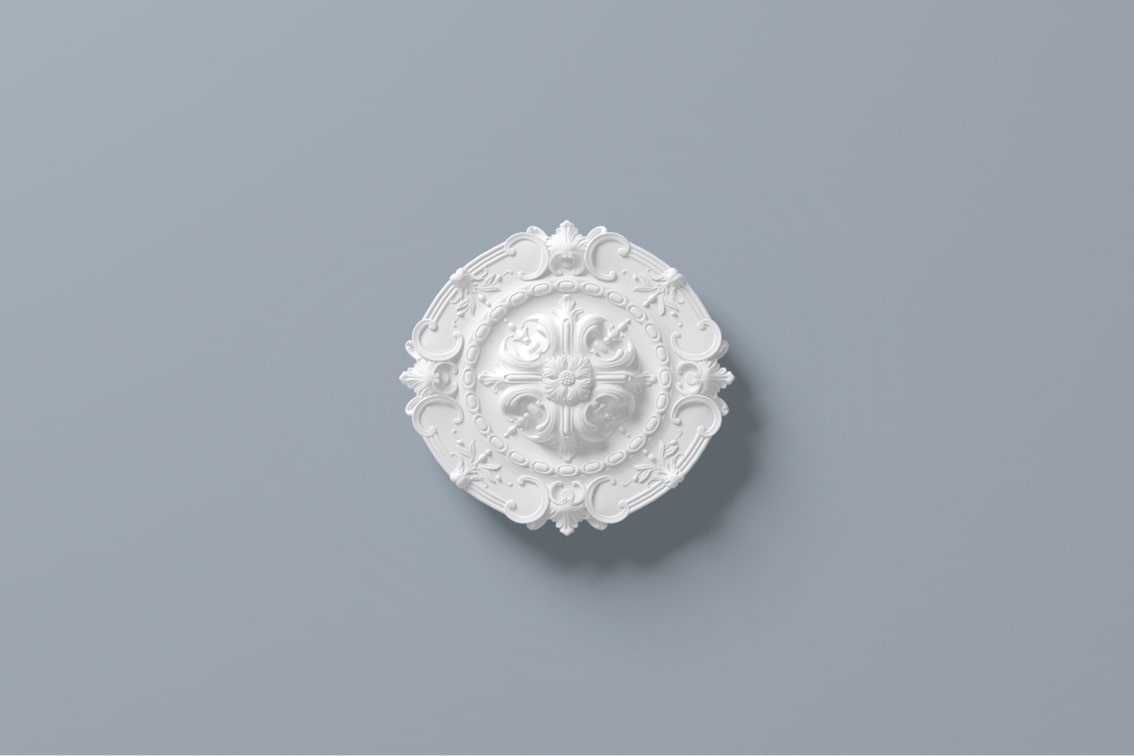 Takrosetten ger rummet ett extra lyft och passar inne i många miljöer. Kombinera gärna moderna ljuskällor med klassiska- och tidlösa takrosetter. Takrosetten används främst som dekor i taket, men den kan även monteras på väggar.