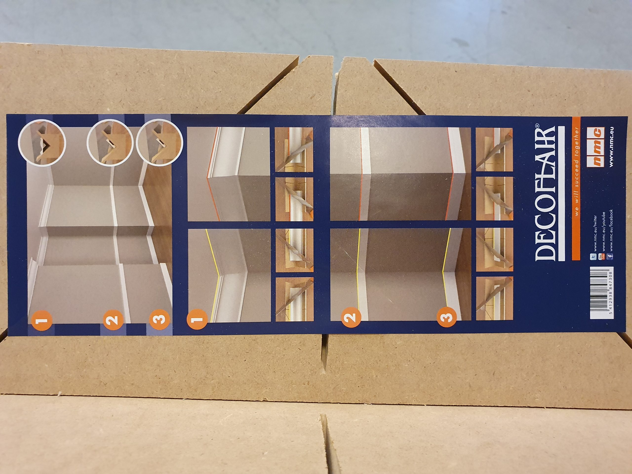 En enkel och bra geringslåda med integrerad instruktion för korrekt placering och kapning av list.